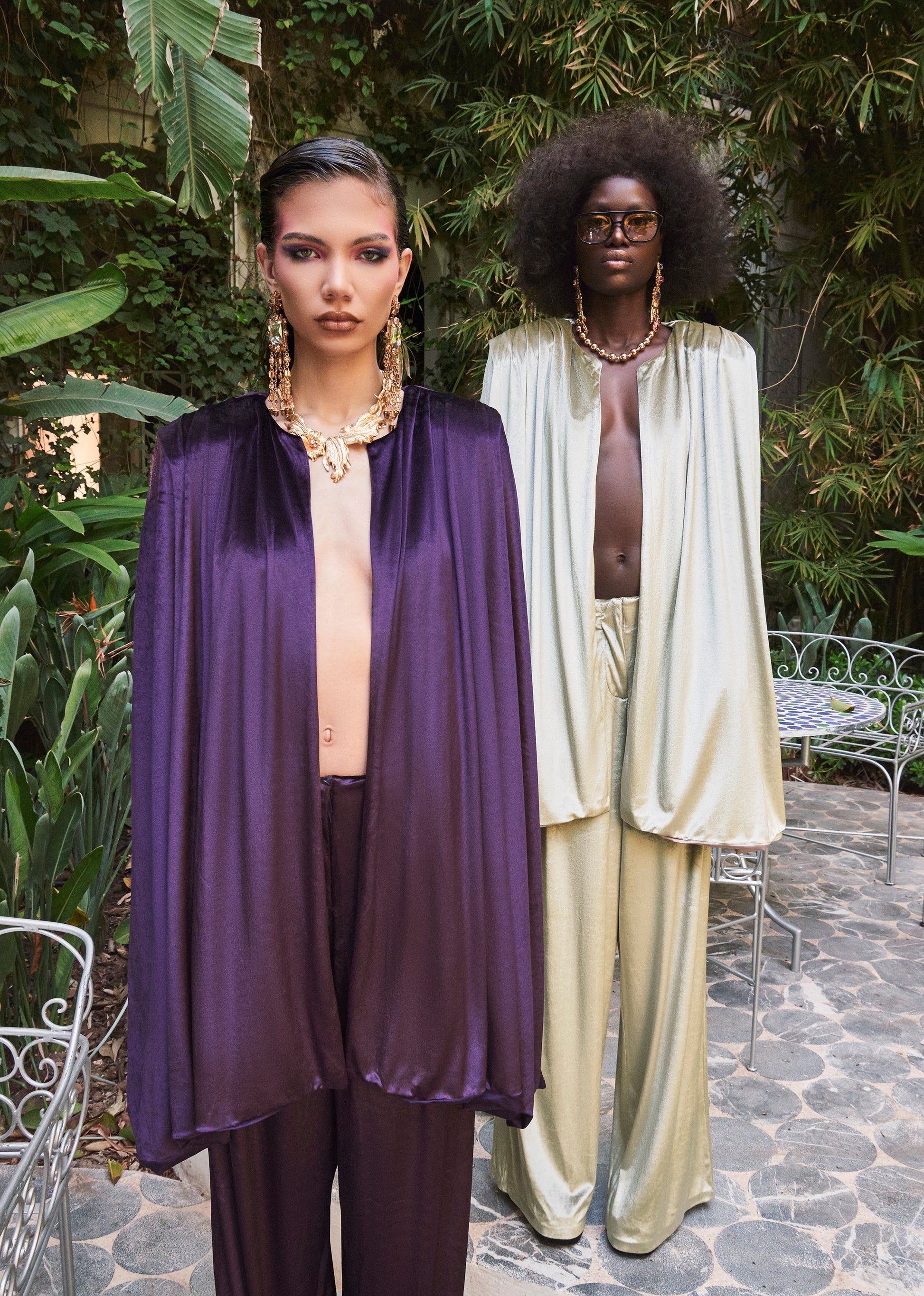 Ensemble cape et pantalon en velours aubergine